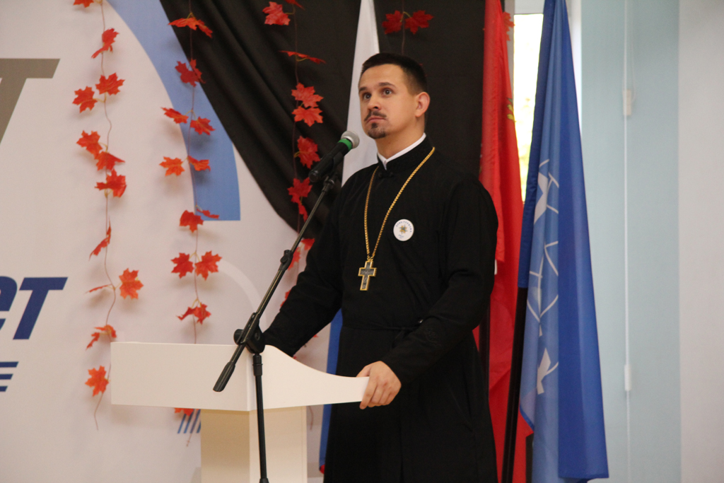 Настоятель Храма Святой Троицы Павел Александрович Зуев добавил в праздничную атмосферу глубокую духовную ноту. Он напомнил, что текущий год проходит под знаком 80-летия Великой Победы, и призвал студентов черпать силы в истории и культуре страны. «Путешествуя по России, вы сможете духовно обогатиться, соприкасаясь с реликвиями, которые хранят наши города. Пусть ваш путь будет светлым, а сердце — открытым для новых встреч, впечатлений и осознания нашего великого наследия», — сказал отец Павел.