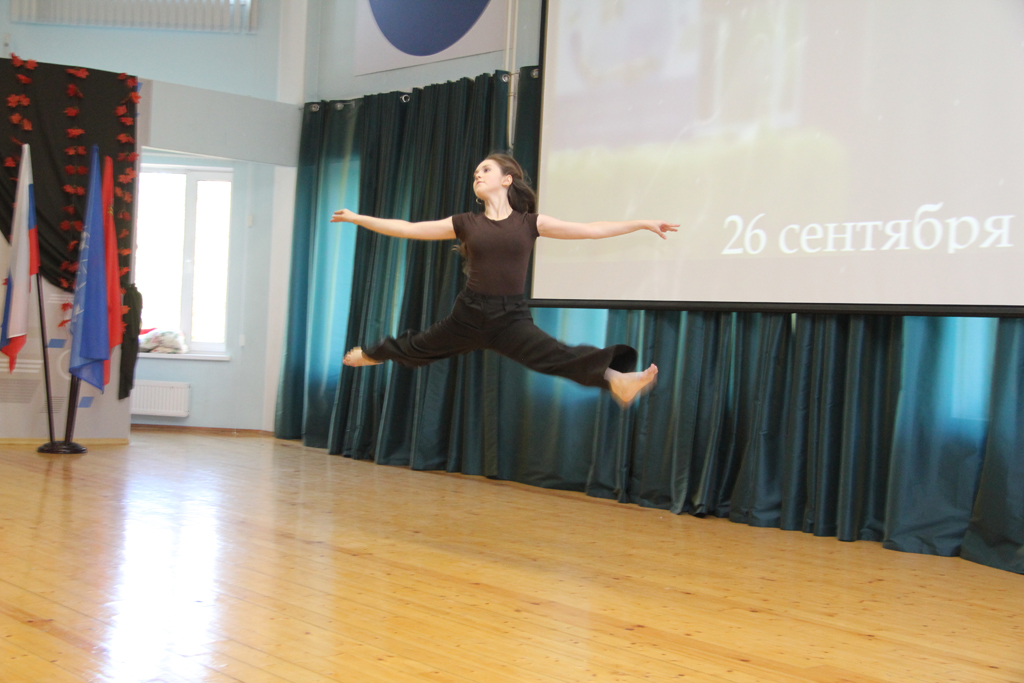 Творческая часть праздничной программы открылась танцевальным номером в исполнении Мисс Академии-2025 Анастасии Борисовой.