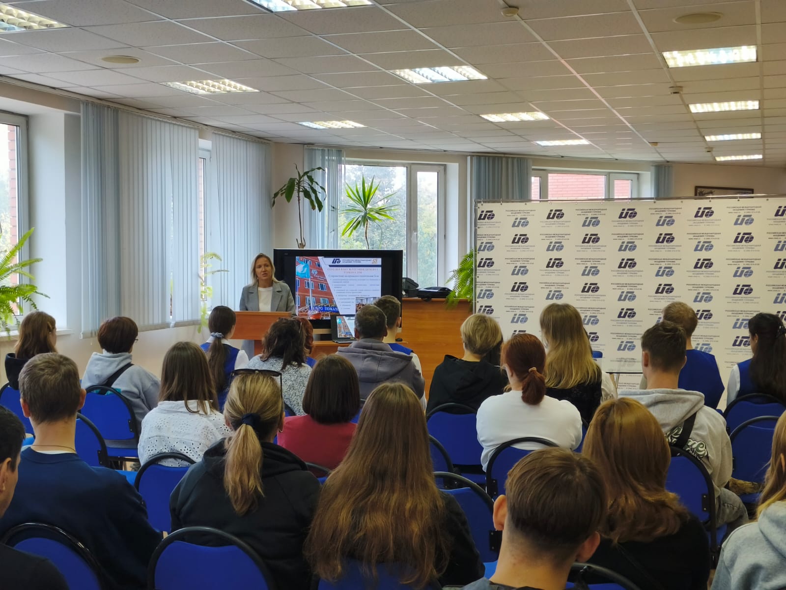После просмотра видеофильма об академии гостей приветствовала заместитель декана факультета менеджмента туризма, заведующая кафедрой гражданско-правовых дисциплин, к.п.н, доцент Гусева Ирина Витальевна. В своем выступлении она рассказала о событиях в жизни академии, о принципиальных отличиях обучения в РМАТ, об образовательных программах и тонкостях поступления. Для выпускников 11 классов и колледже доступно 10 образовательных программ бакалавриата и специалитета: Менеджмент, Международный гостиничный менеджмент Ватель-РМАТ, Туризм, Гостиничное дело, Таможенное дело, Юриспруденция, Управление персоналом, Государственное и муниципальное управление, Психолого-педагогическое образование, Дизайн архитектурной среды.