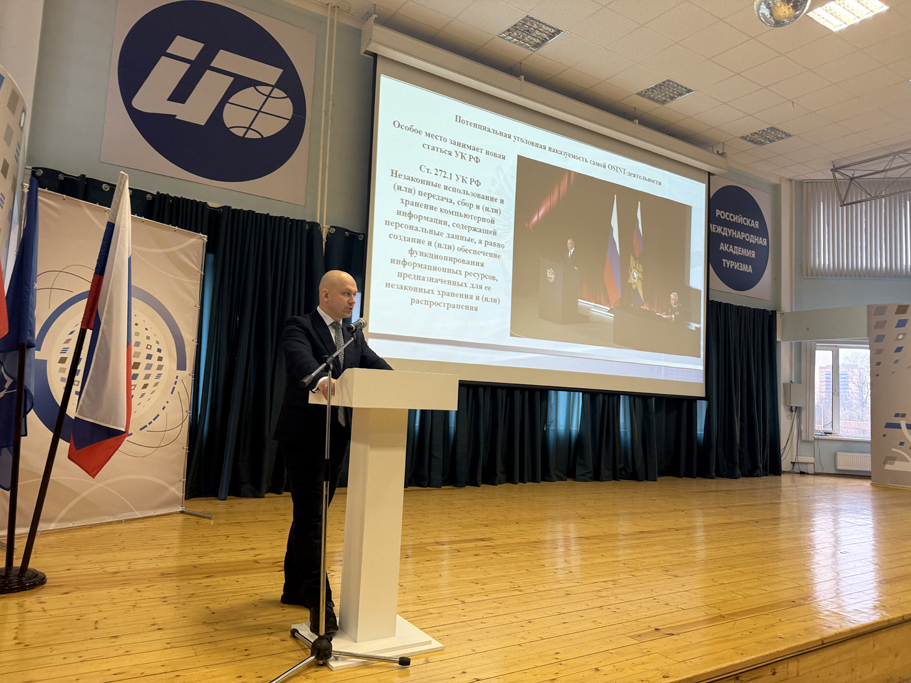 К.ю.н., доцент, заместитель начальника кафедры противодействия преступлениям в сфере ИТТ Константинов Алексей Владимирович выступил с докладом «Актуальные вопросы противодействия преступлениям в сфере информационно-телекоммуникационных технологий». Спикер поделился с аудиторией аналитикой кибер-преступлений в России, способами предотвращения преступных атак, а также дал рекомендации присутствующим гостям как не стать жертвами преступников в сети Интернет.