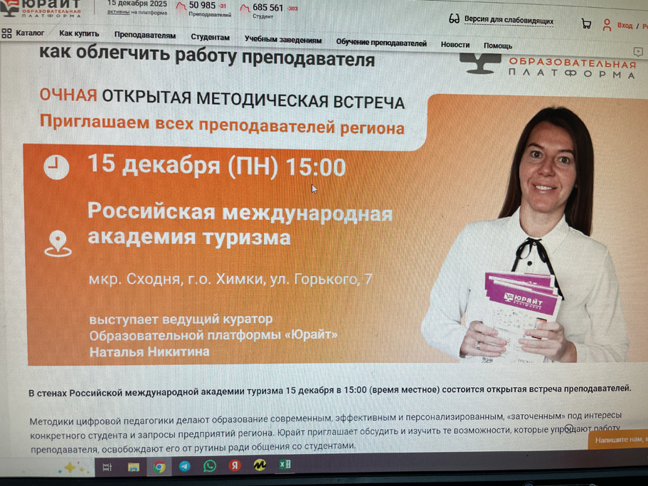 15 декабря в Академии состоялся семинар на тему «Контент, сервисы, данные: как облегчить работу преподавателя», организованный в очном и дистанционном формате ведущим куратором Образовательной платформы Юрайт» Никитиной Натальей.