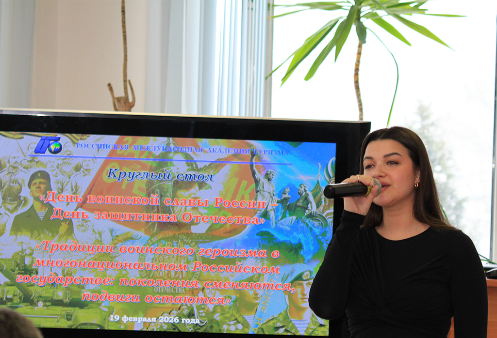 19 февраля в Российской международной академии туризма состоялся круглый стол на тему «Традиции воинского героизма в многонациональном Российском государстве: поколения сменяются, подвиги остаются», посвященный «Дню воинской славы России — Дню защитника Отечества».