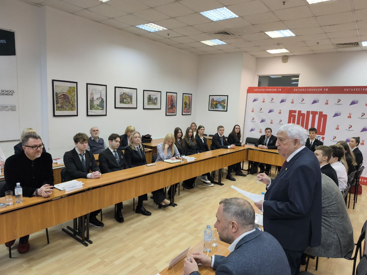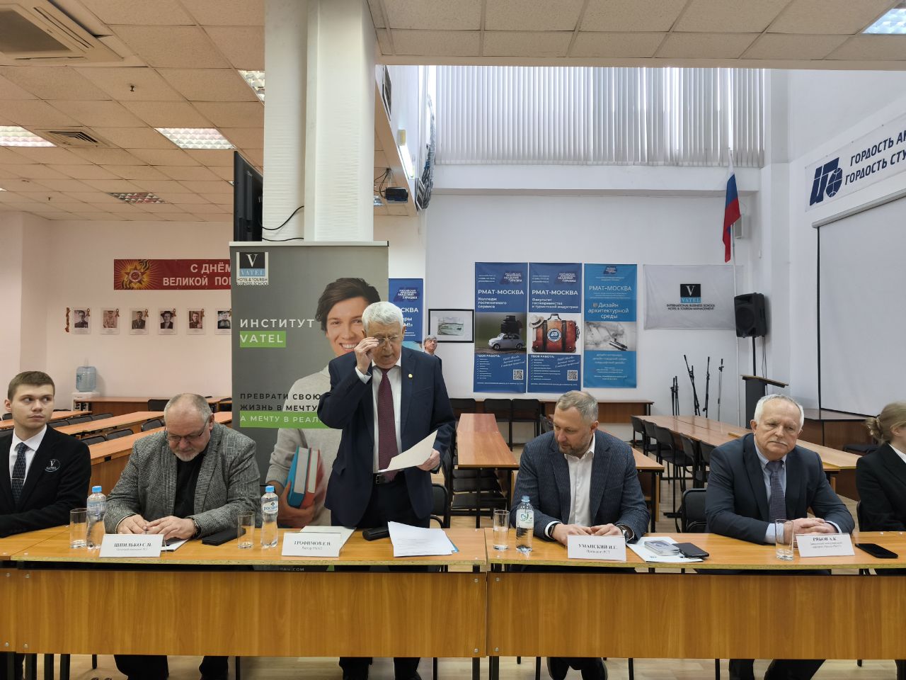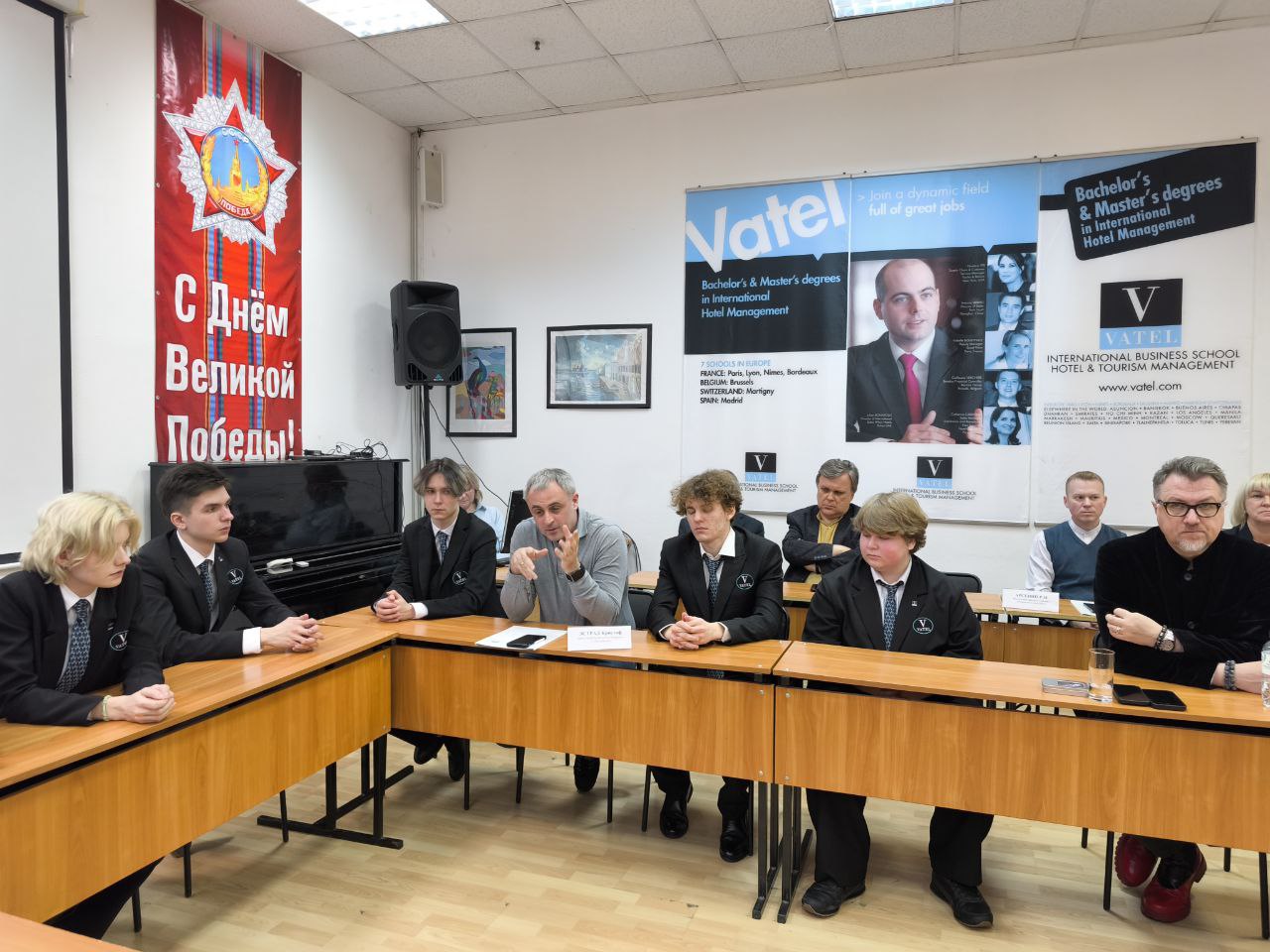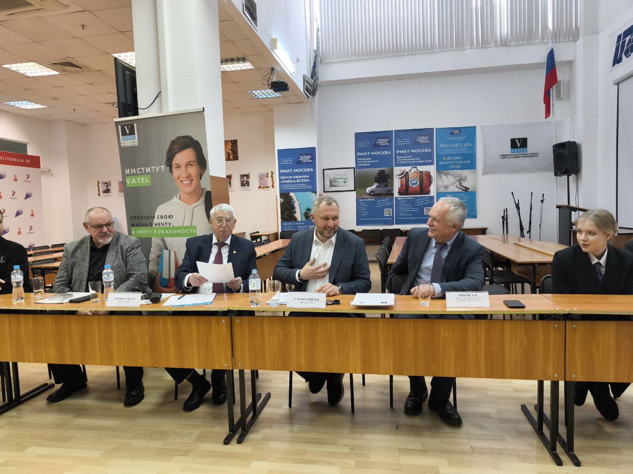 В МОСКОВСКОМ ФИЛИАЛЕ РМАТ СОСТОЯЛАСЬ ВСТРЕЧА СТУДЕНТОВ МЕЖДУНАРОДНОЙ ПРОГРАММЫ ДВОЙНОГО ДИПЛОМА «ВАТЕЛЬ-РМАТ» С РЕКТОРОМ РМАТ Е.Н. ТРОФИМОВЫМ И ПРЕЗИДЕНТОМ РСТ, ГЕНЕРАЛЬНЫМ ДИРЕКТОРОМ НАЦИОНАЛЬНОГО ТУРОПЕРАТОРА «АЛЕАН» И.Г УМАНСКИМ