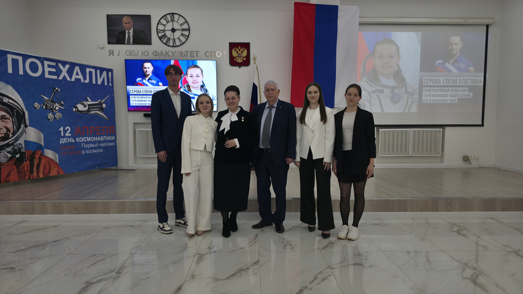 Космонавта-испытателя Елену Олеговну Серову тепло приветствовали ректор Академии Евгений Николаевич Трофимов и собравшиеся в уютном зале факультета среднего профессионального образования РМАТ.