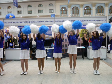 Перед стендом выступили студенты с анимационной программой: Ванченко Анна, Акопян Светлана, Войникова Снежана, Арбатская Виктория, Ушкова Алёна, Тимкаева Ангелина, Куншина Яна, Ласкина Юлия.