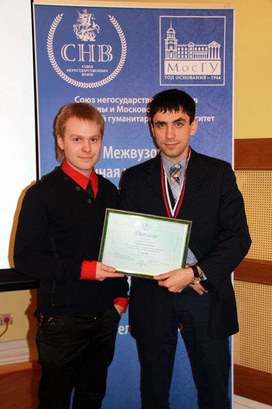 18 апреля 2013 г. в 15.00 в Зале Ученого совета Московского гуманитарного университета по итогам IX конкурса студенческих научных работ состоялась традиционная студенческая научная конференция, в ходе которой прошла торжественная церемония награждения победителей конкурса. В конференции приняли участие студенты и преподаватели более 30 московских вузов.