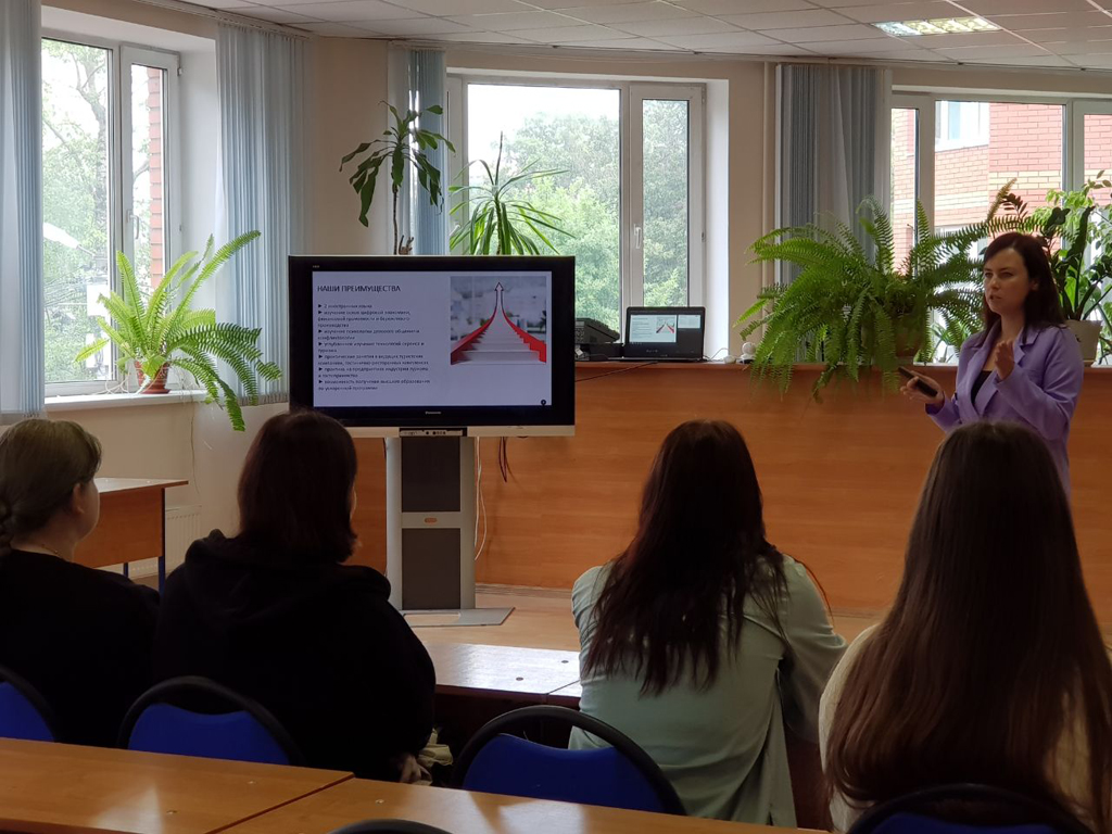 В дальнейшем встреча с гостями продолжилась в читальном зале. Проректор по развитию программ магистратуры и аспирантуры Рассохина Татьяна Васильевна поприветствовала участников, рассказала об истории и структуре Академии, приоритетных направлениях развития, условиях получения образования.