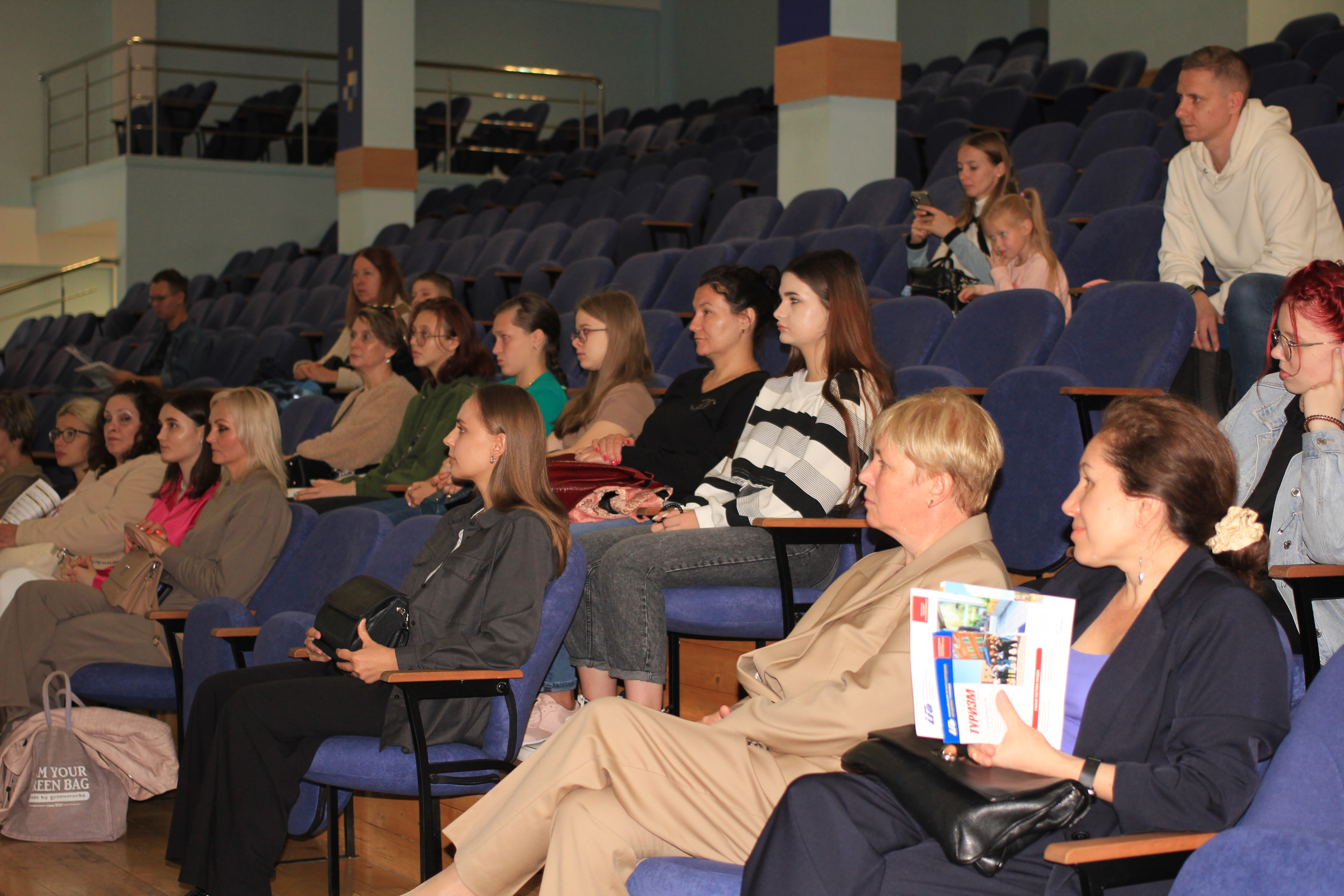В начале мероприятия Савельева Ольга провела экскурсию по учебному корпусу № 1. Во время экскурсии абитуриенты и их родители ознакомились с историей нашего вуза, основными учебными аудиториями, лингафонным кабинетом и музеем Боевой славы. В дальнейшем встреча с гостями продолжилась в актовом зале.