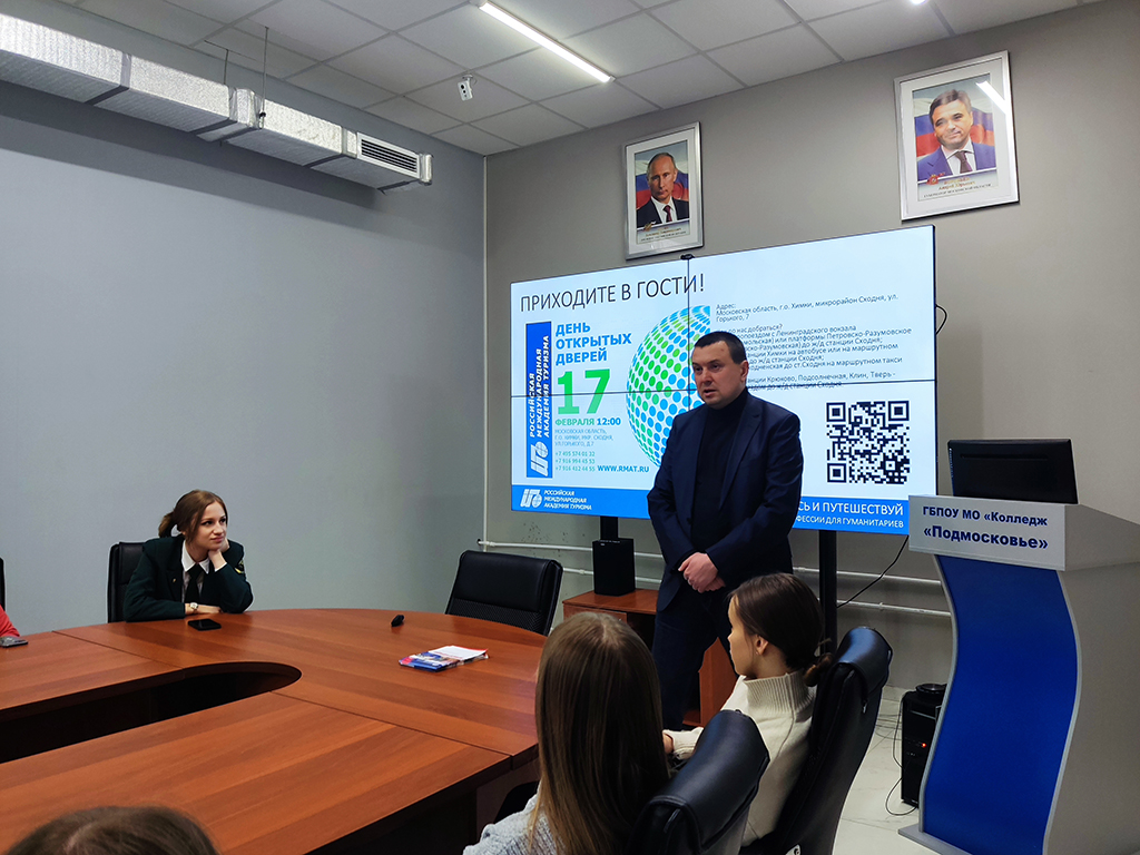 Так, в рамках сотрудничества с колледжем «Подмосковье» на учебной площадке в городе Лобне состоялась встреча студентов специальности «Сервис на транспорте» с представителями Российской международной академии туризма.
