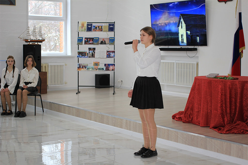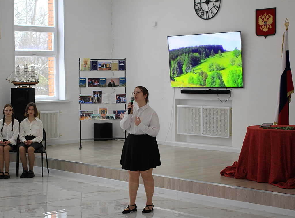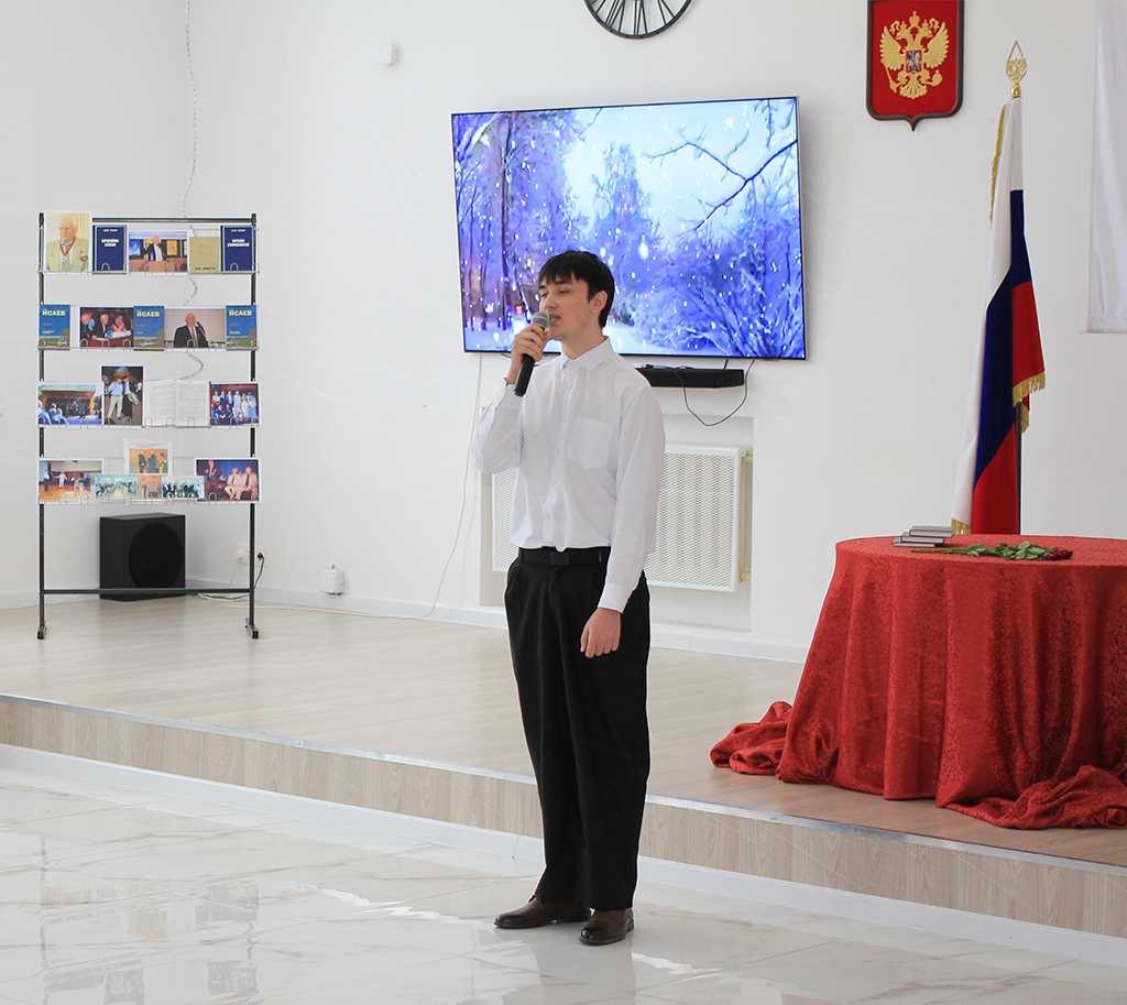 Эта тема звучала и в стихотворных произведениях «Родина. Сторонушка. Сторонка», «Народ», «Уезжал в 17», «Бога молю молитвой», «Совесть на дороге», которые прочли студент 3 курса Роман Бордиян, первокурсники Пётр Смальков, Арсений Хливный, Алина Биджиева, Ксения Кудий.