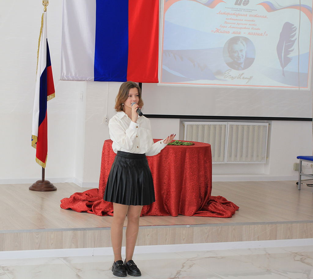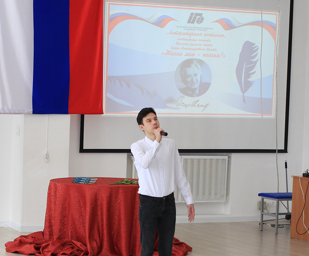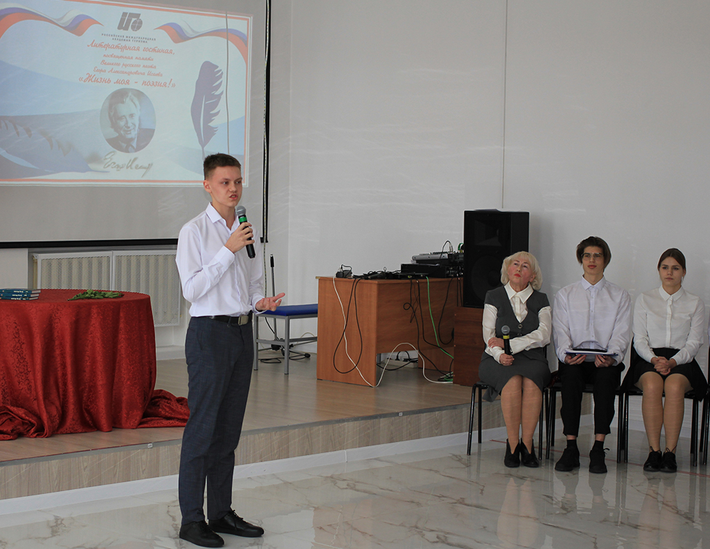 На этот раз она была посвящена русскому советскому поэту, поэту-фронтовику, лауреату Ленинской премии, Герою Социалистического Труда Егору Александровичу Исаеву. «Жизнь моя – поэзия!» - так назвали эту встречу словами из известного стихотворения поэта, которое прозвучало в начале мероприятия в исполнении заместителя декана по воспитательной и социальной работе факультета среднего профессионального образования Галины Григорьевны Ляминой, которая организовала вместе со студентами поэтическое действо.