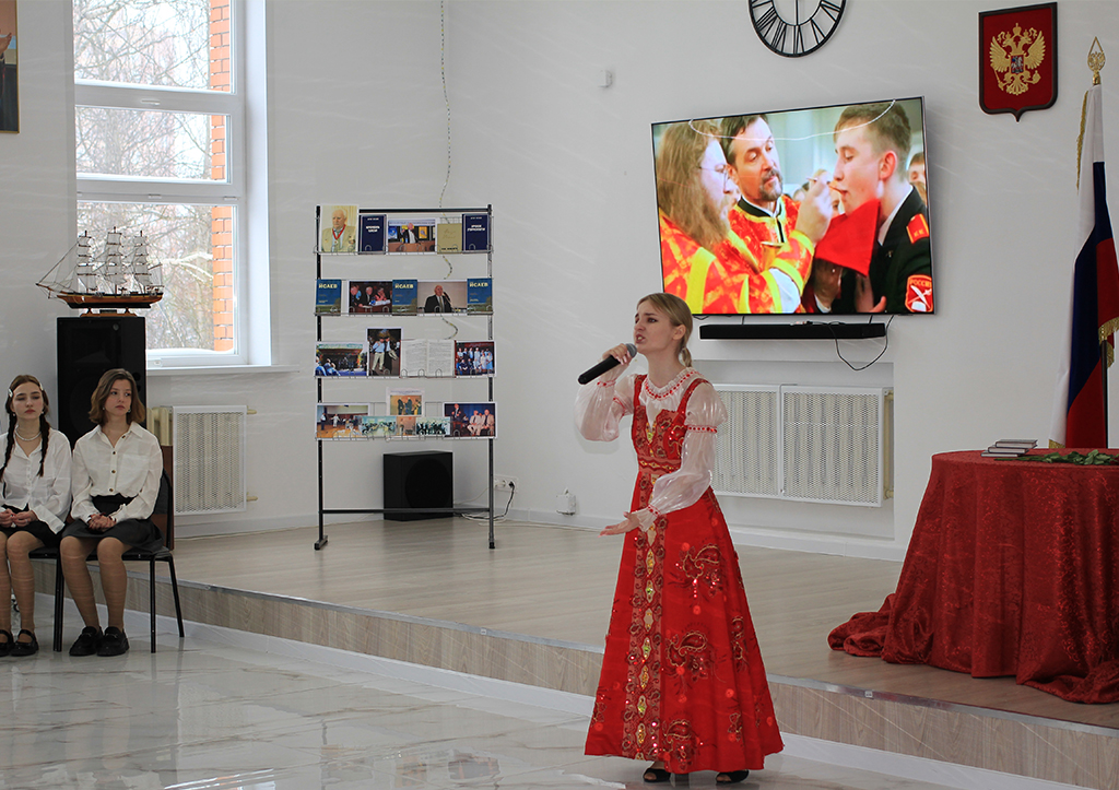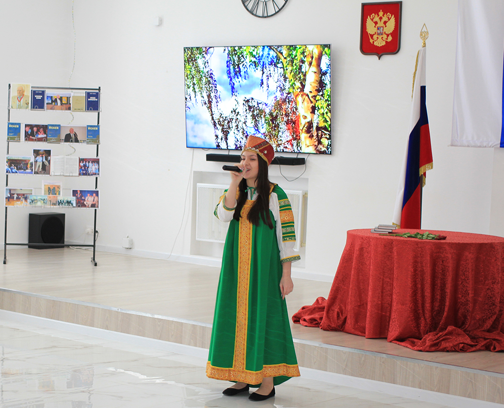 Песня «Горькая моя Родина» на слова Николая Добронравова и музыку Александры Пахмутовой в исполнении студентки 2 курса Варвары Колмаковой стала завершающим аккордом литературной гостиной.