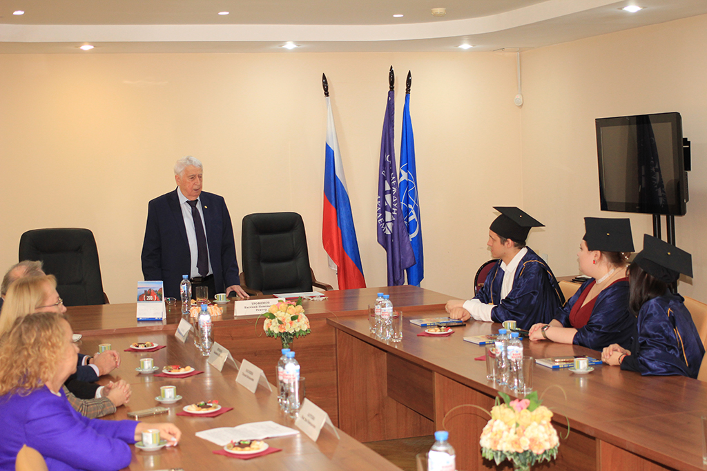 Выпускникам магистратуры были вручены экземпляры юбилейной книги "55 лет РМАТ. Новые горизонты".