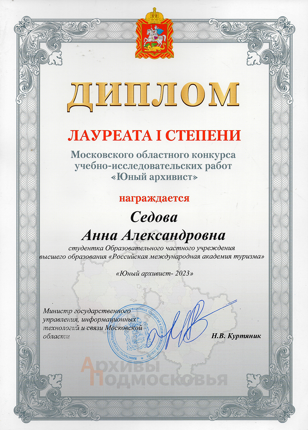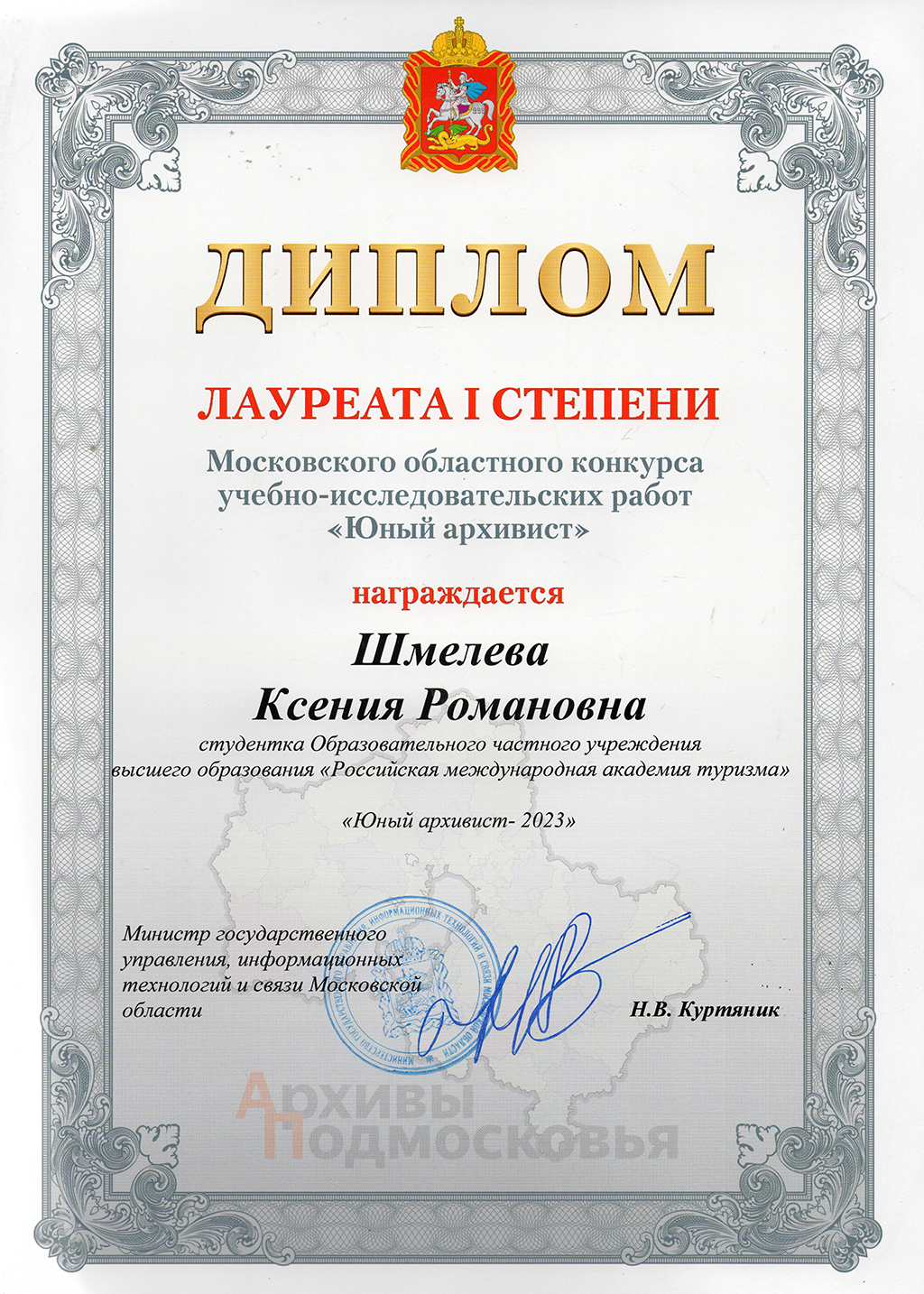 СТУДЕНТЫ РМАТ – ЛАУРЕАТЫ МОСКОВСКОГО ОБЛАСТНОГО КОНКУРСА УЧЕБНО-ИССЛЕДОВАТЕЛЬСКИХ РАБОТ «ЮНЫЙ АРХИВИСТ» 2023 ГОДА