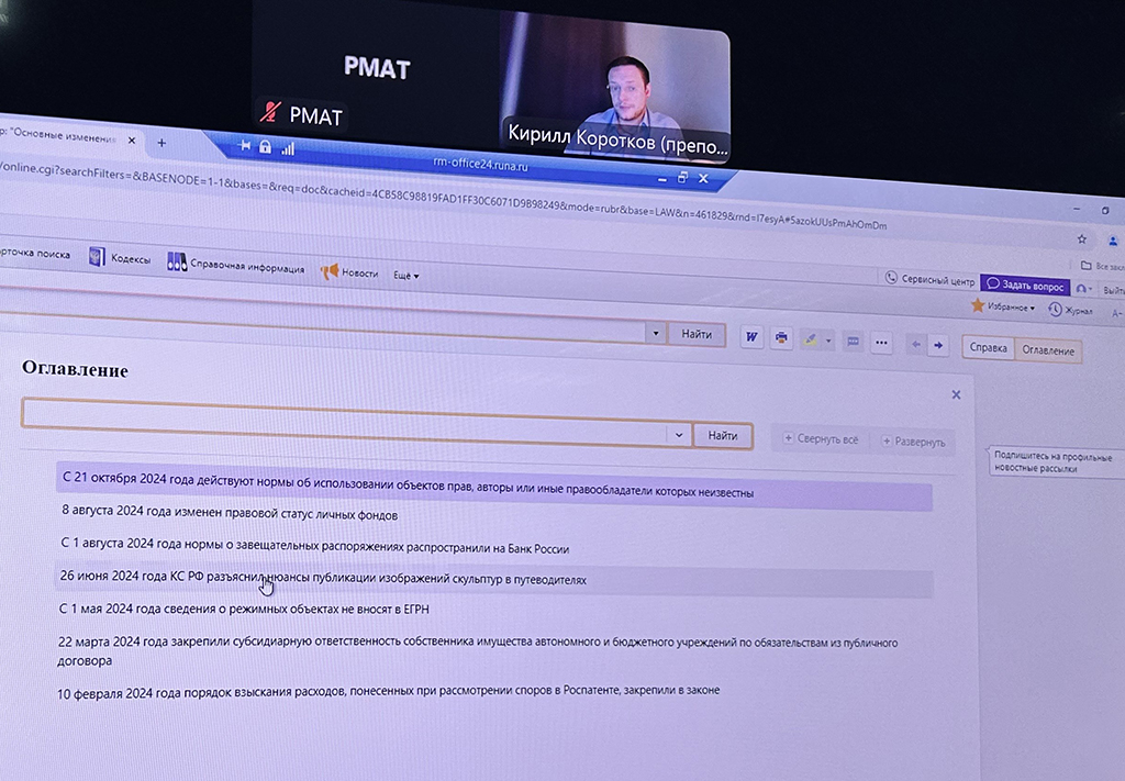 В рамках договора о сотрудничестве, заключенного более 5 лет назад по инициативе ректора РМАТ доктора политических наук Трофимова Евгения Николаевича с компанией Консультант Плюс состоялось двухдневное (14 и 21 ноября) интерактивное практическое обучение для студентов направления бакалавриата и специальности СПО «Юриспруденция», а также специальности высшего образования «Таможенное дело».