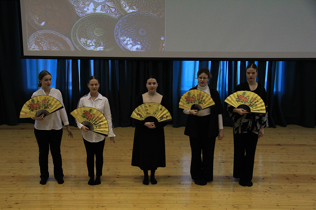 Группа студентов специальности «Таможенное дело», изучая по программе кроме английского языка, немецкий и китайский, исполнила зажигательную песню на немецком языке, а студенты направлений «Туризм» и «Гостиничное дело» пригласили зрителей в теплые страны Латинской Америки песней на испанском языке.