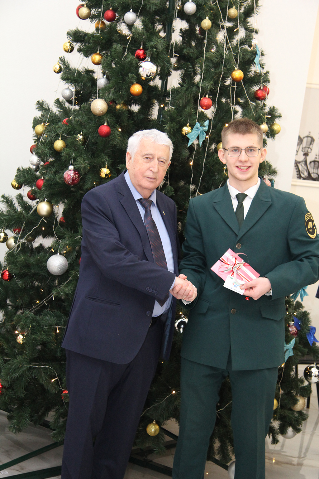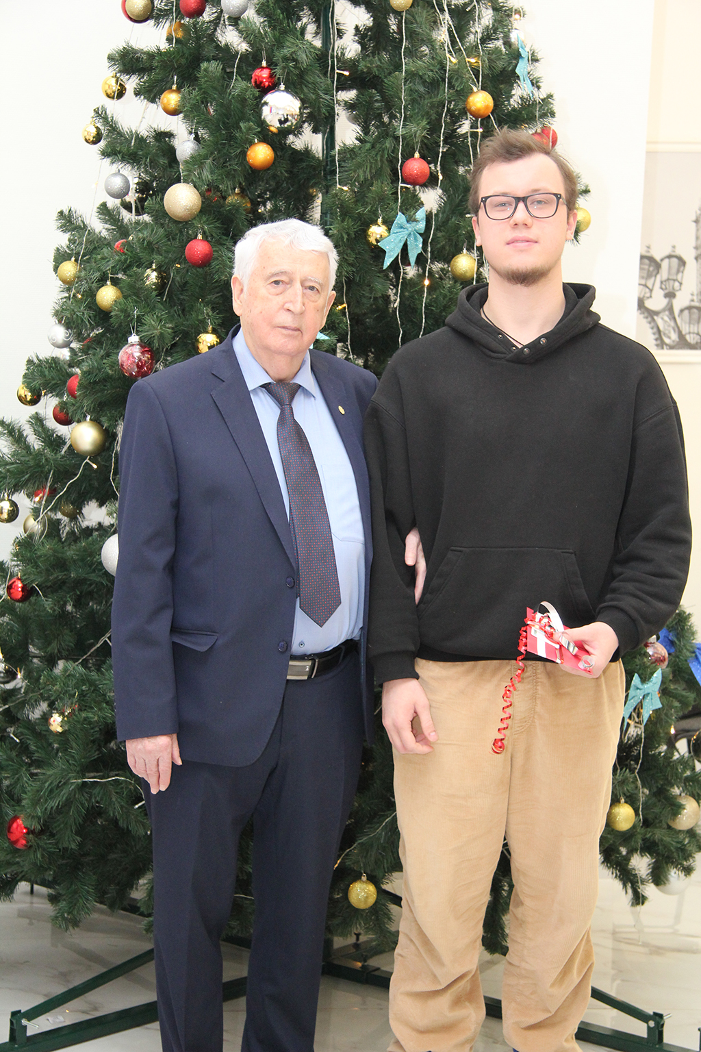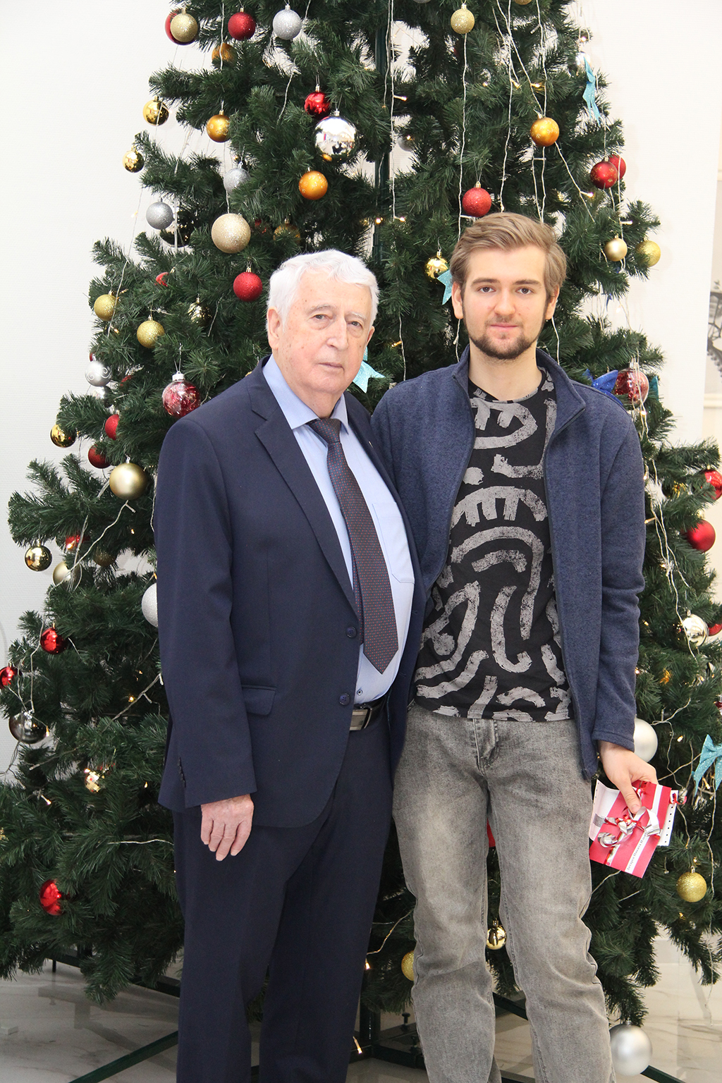 На память о встрече Евгений Николаевич вручил подарочное издание «55 лет РМАТ. Новые горизонты», выпущенное к юбилею Академии, а также наборы конфет и праздничные сувениры. «Ёлка желаний» привнесла новогоднее настроение, как и золотые карты Сбербанка, которые вместе с материальной поддержкой предоставил ректор. Кроме того, Евгений Николаевич отправил личные поздравления родителям каждого из студентов. Он ещё раз тепло поздравил студентов и их родных с новогодними праздниками.