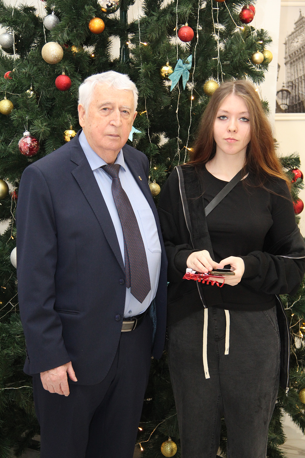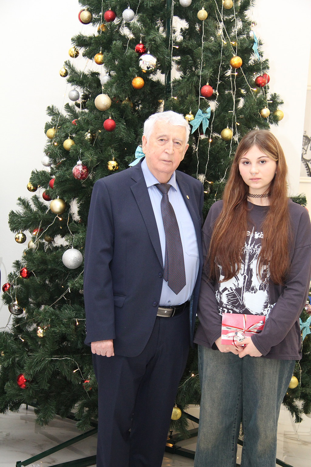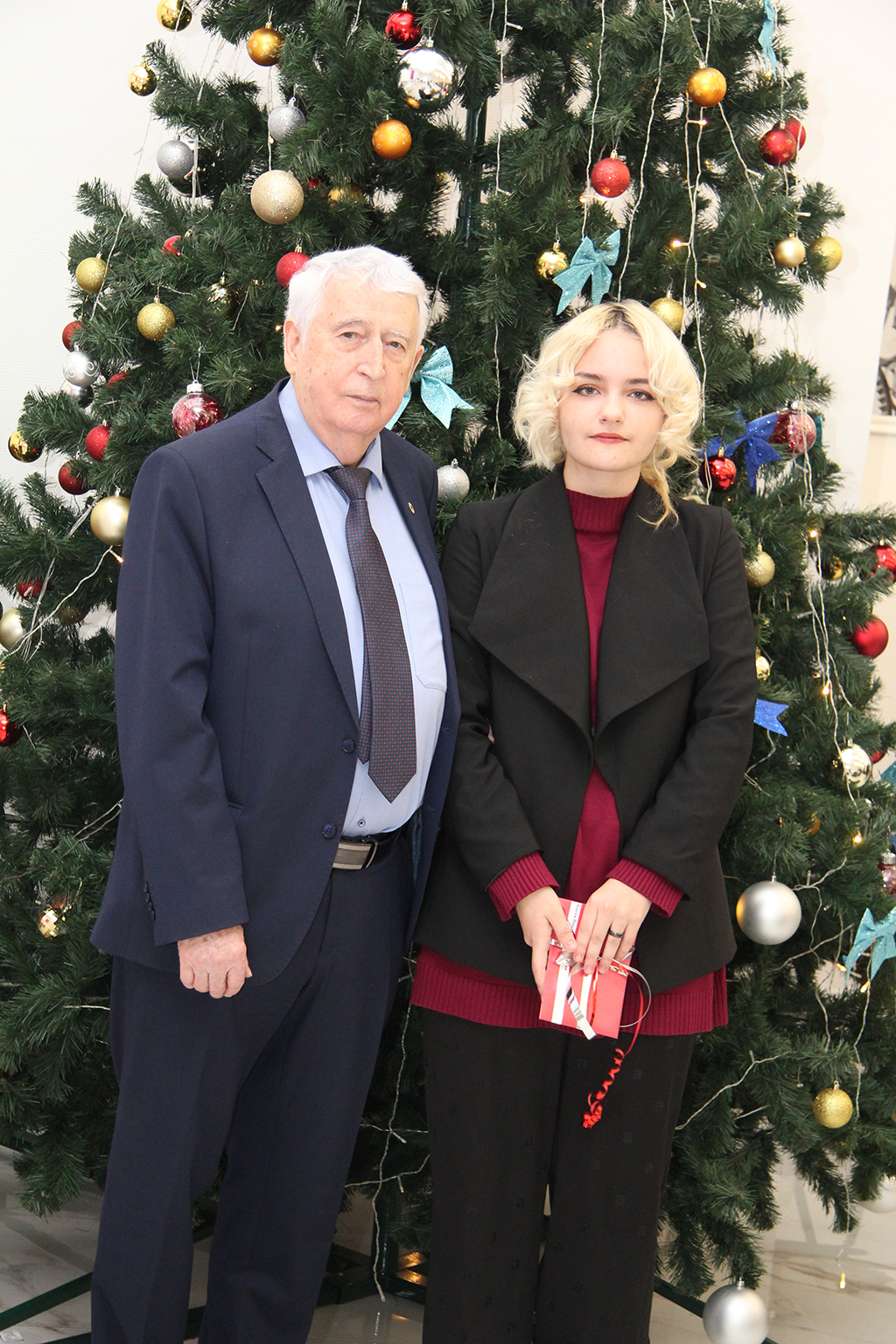 На память о встрече Евгений Николаевич вручил подарочное издание «55 лет РМАТ. Новые горизонты», выпущенное к юбилею Академии, а также наборы конфет и праздничные сувениры. «Ёлка желаний» привнесла новогоднее настроение, как и золотые карты Сбербанка, которые вместе с материальной поддержкой предоставил ректор. Кроме того, Евгений Николаевич отправил личные поздравления родителям каждого из студентов. Он ещё раз тепло поздравил студентов и их родных с новогодними праздниками.