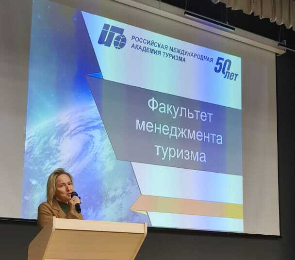 Заместитель декана факультета менеджмента туризма, к.п.н., доцент, заведующая кафедрой гражданско-правовых дисциплин Гусева Ирина Витальевна в своем выступлении подробно рассказала про образовательные программы в Академии, отметив, что РМАТ активно развивается, открываются новые образовательные программы как на уровне среднего профессионального образования, так и по программам высшей школы.