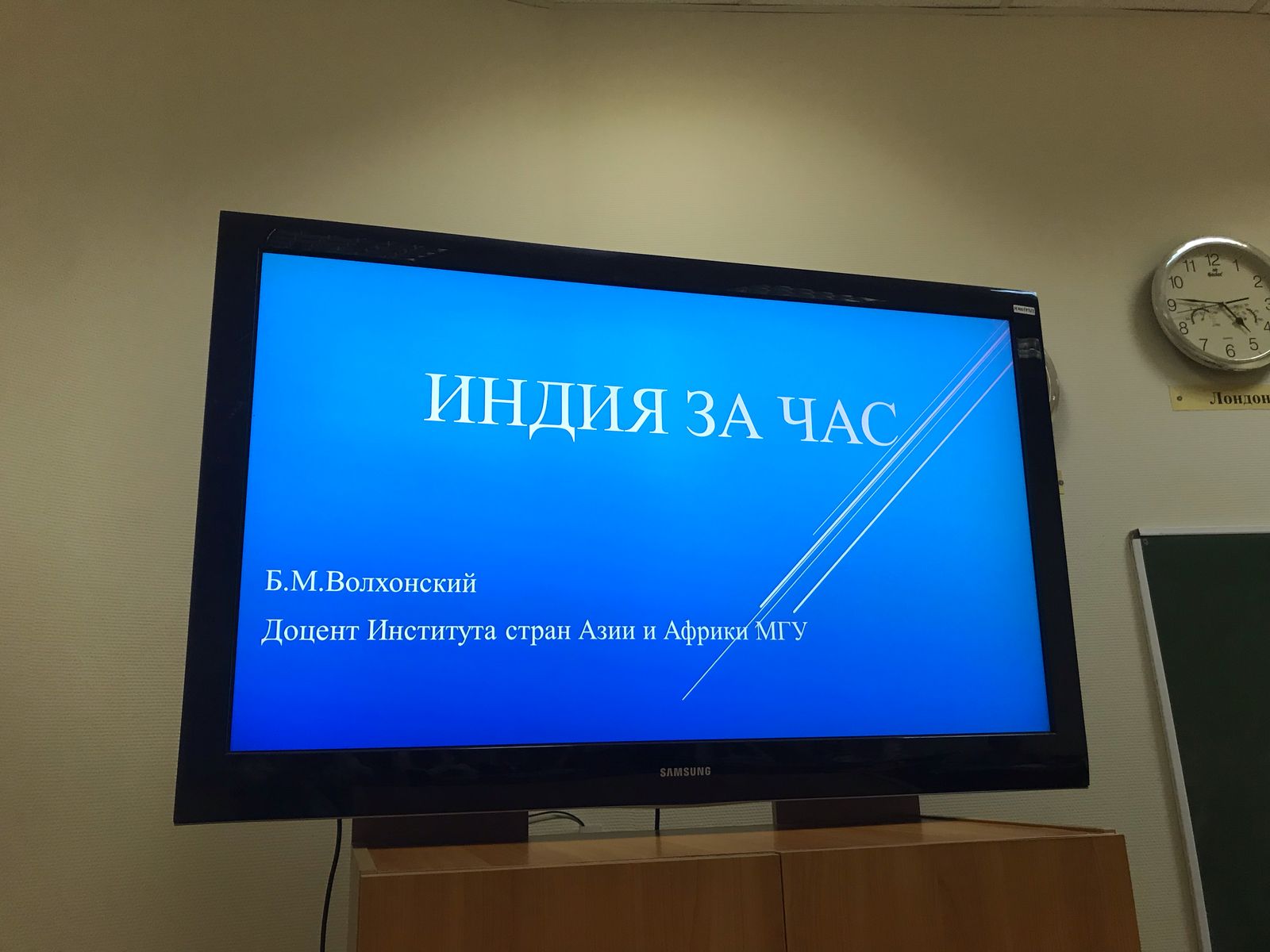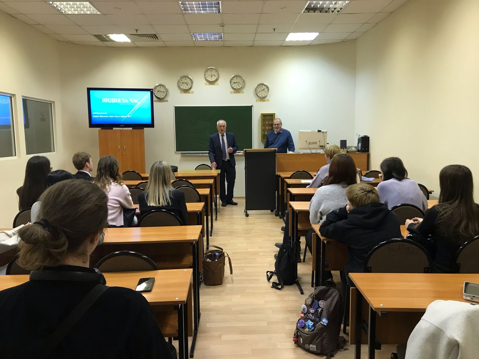18 февраля по инициативе ректора РМАТ Трофимова Евгения Николаевича для группы состоялась лекция ведущего индолога России, доцента Института Азии и Африки МГУ Волхонского Бориса Михайловича. В своей лекции Борис Михайлович познакомил студентов с национальными особенностями Индии, культурологическими аспектами, социально-политическим развитием и современным состоянием этой многообразной и уникальной страны. Лектор назвал Индию страной контрастов и в этом всем студентам, участникам Зимней школы, предстоит убедиться уже в ближайшее время.