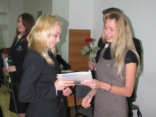 В этом году студентов первокурсников пришли поздравить проректор РМАТ Антошин А.Н., атташе по академическому сотрудничеству Посольства Франции в России Николя Мазек, генеральный директор Российско-французской торгово-промышленной палаты Франции Павел Шинский, профессор Института Ватель Мадрид Елена Виллануэва, директор Московского филиала РМАТ Морозов М.А. Гости выступили с приветственной речью и пожелали студентам первого курса успешной учебы и профессиональных успехов. Г-н Мазек обратил особое внимание, что в рамках Года Франции в России и России во Франции проекты подобные программе Ватель-РМАТ приобретают особое значение. Выпускники Ватель-РМАТ 2010 года Скунова Ксения и Семенов Константин также поприветствовали студентов. Они поделились опытом, пожелали им успехов в учебе и усердия при освоении иностранных языков. По уже сложившейся традиции в конце церемонии выпускники вручили первокурсникам шейные платки (лавальеры) и галстуки Vatel.
