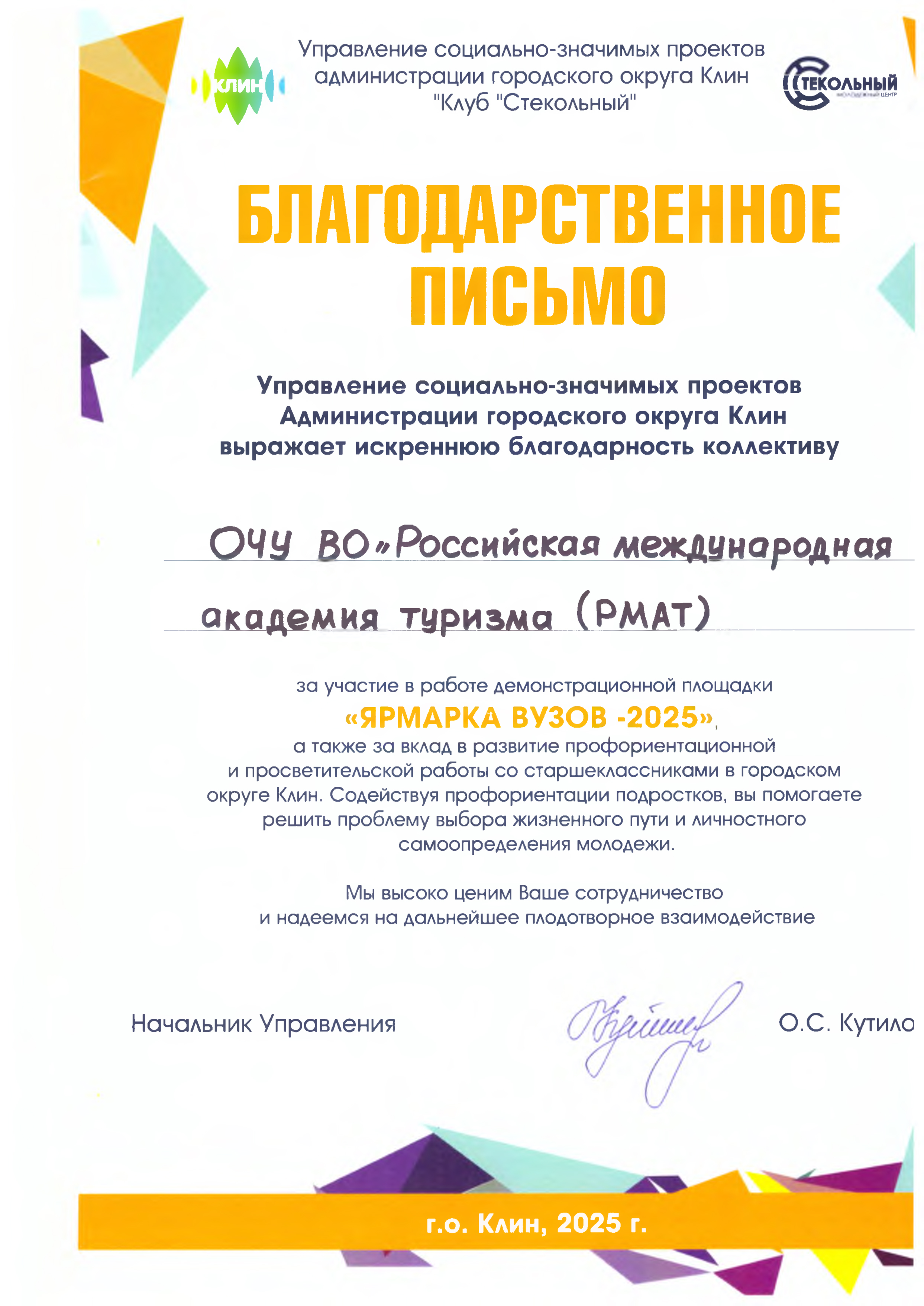 22 марта 2025 года Академия представила свои образовательные программы на образовательной выставке «Ярмарка вузов -2025».