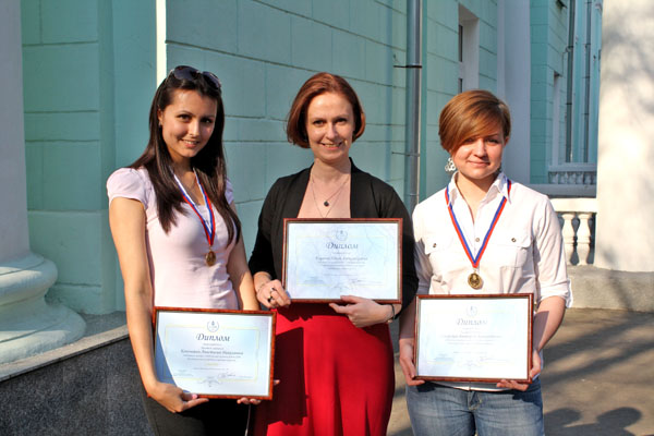 На фото: студенктка 5 курса РМАТ Кононович Анастасия, выпускница РМАТ Сикорская Виктория и научный руководитель Киреева Ю.А.