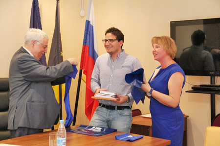 Ректор Академии Евгений Николаевич Трофимов поздравил итальянских магистрантов с успешной сдачей экзаменов, пожелал им успехов в дальнейшей работе над магистерскими диссертациями и подарил каждому магистранту свою монографию «Россия многонациональная» с автографом. Он также выразил уверенность в том, что российско-итальянская программа подготовки магистров «Менеджмент туристских дестинаций – Экономика туризма» будет продолжена и в будущем.