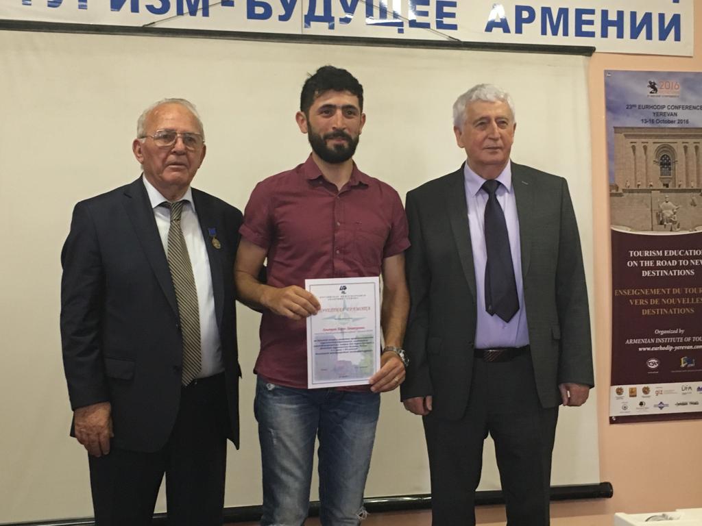 Ректор вручил памятные медали чрезвычайному и полномочному послу Республики Казахстан в Республике Армения Урузаеву Тимуру Бибиталиевичу, чрезвычайному и полномочному послу Республики Беларусь в Республике Армения Назарчуку Игорю Васильевичу, директору Российского центра науки и культуры в Ереване (Россотрудничество) Рыбинскому Сергею Алексеевичу, президенту Армянской федерации туризма Мехак Априсяну Ремировичу. Все награжденные выступили на мероприятии и говорили о высокой роли Академии в подготовке туристских кадров.