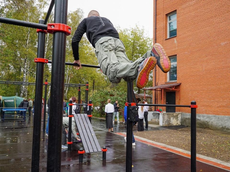Комплекс с турниками и брусьями, столами для тенниса расположился рядом с корпусом факультета среднего профессионального образования. На площадке есть и зоны для командных игр. В скором будущем отроется скалодром.