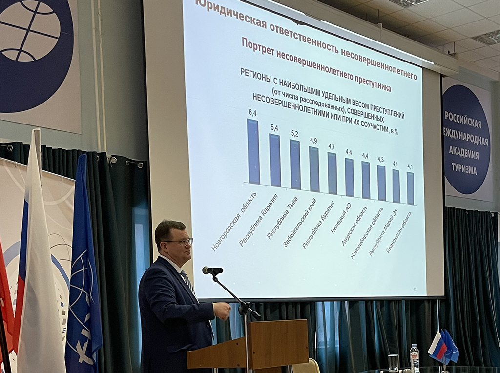 Гусева Ирина Витальевна, к.п.н., доцент, заведующая кафедрой гражданско-правовых дисциплин выступила с докладом на тему «Развитие правовой культуры молодежи как способ профилактики радикализма: опыт Российской международной академии туризма». По мнению докладчика, опыт Российской международной академии туризма по формированию правовой культуры личности в сочетании с эффективной профилактической, воспитательной и патриотической работой может считаться положительным.
