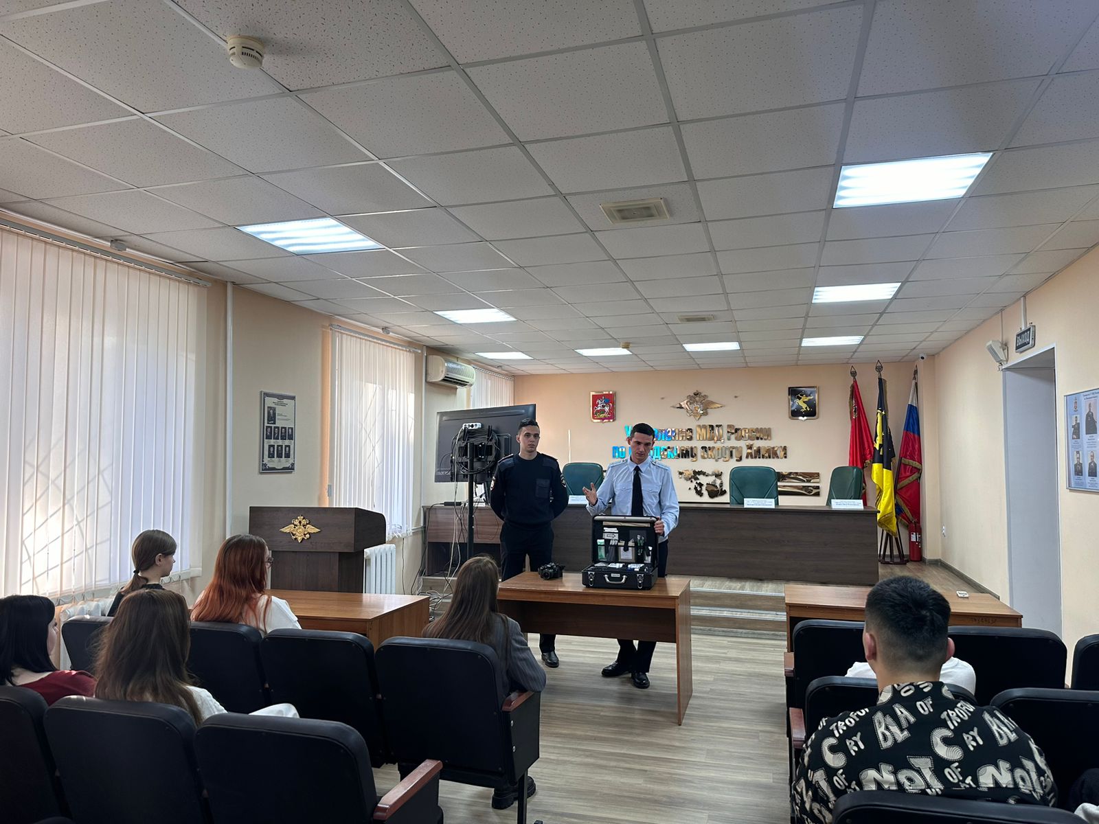 С криминалистическими методиками в деятельности органов внутренних дел и порядке проведения дактилоскопической экспертизы познакомил студентов эксперт-криминалист Еременко Тимофей.