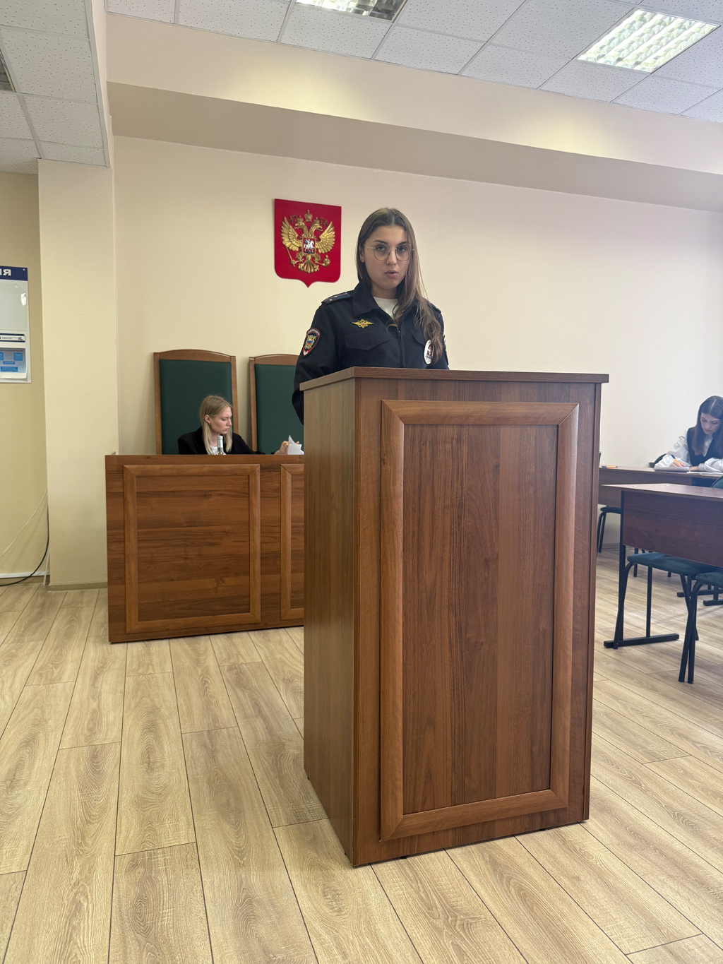 По окончанию процедуры сдачи государственного экзамена начальник УМВД по г.о. Химки Ратникова Мария Алексеевна пригласила выпускников на работу в органы полиции.