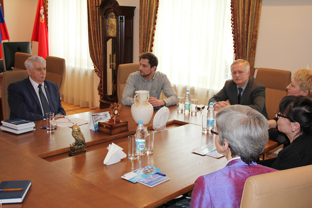 Затем состоялся приём у ректора РМАТ, доктора политических наук Евгения Николаевича Трофимова. Ректор рассказал о перспективах развития образования в России, о месте РМАТ в этой системе как эффективного вуза, поделился предложениями о дальнейшем сотрудничестве. А оно существует уже не первый год. В связи с объединением и изменением статуса учебного заведения стало необходимым подписание нового договора.