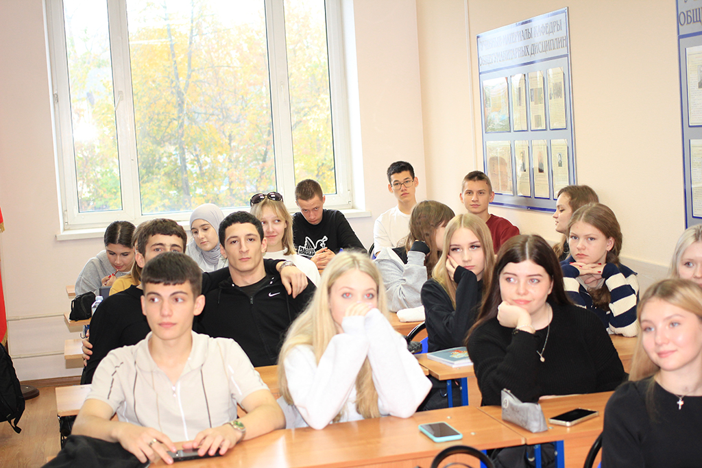 В начале мероприятия экскурсии по Музею боевой славы провели экскурсоводы – студенты третьего, второго и первого курсов факультета среднего профессионального образования Ксения Шмелева, София Молчанова, Анастасия Собровина, Камиль Тажиров, Тимофей Грачев, Дарья Быстрова. Это взаимодействие – залог преемственности в студенческом музейном активе, передачи традиций и наработанных профессиональных навыков.