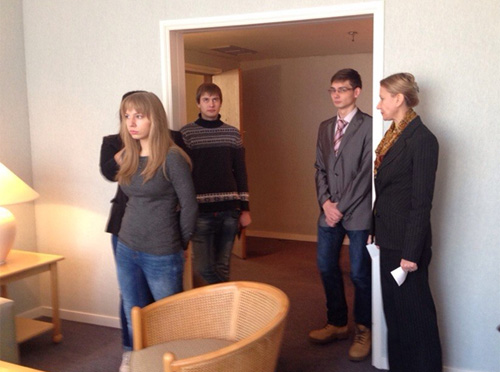 Подтверждением сотрудничества с социальными партнерами является организация учебно-выездных экскурсий на базы гостиниц «Украина» и конгресс-отеля «Ирис» 12 и 21 ноября 2014г, где студенты 3-курса факультета ознакомились со структурной организацией гостиниц, с перечнем предоставляемых услуг, с должностными инструкциями сотрудников, получили глубокие и содержательные ответы от профессионалов на интересующие их вопросы. По итогам учебно-выездных занятий и проведенных собеседований сотрудниками гостиниц десятерым студентам 3-курса предоставлена возможность пройти производственную практику на базе данных организаций с 08 по 21 декабря 2014г.