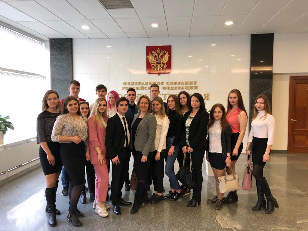 04 апреля 2019 года в рамках повышения правовой компетенции обучающихся по инициативе кафедры гражданско-правовых дисциплин было организовано учебно-практическое занятие (в формате интерактивной экскурсии) для студентов факультета менеджмента туризма и студентов факультета среднего профессионального образования в Государственную Думу Российской Федерации.