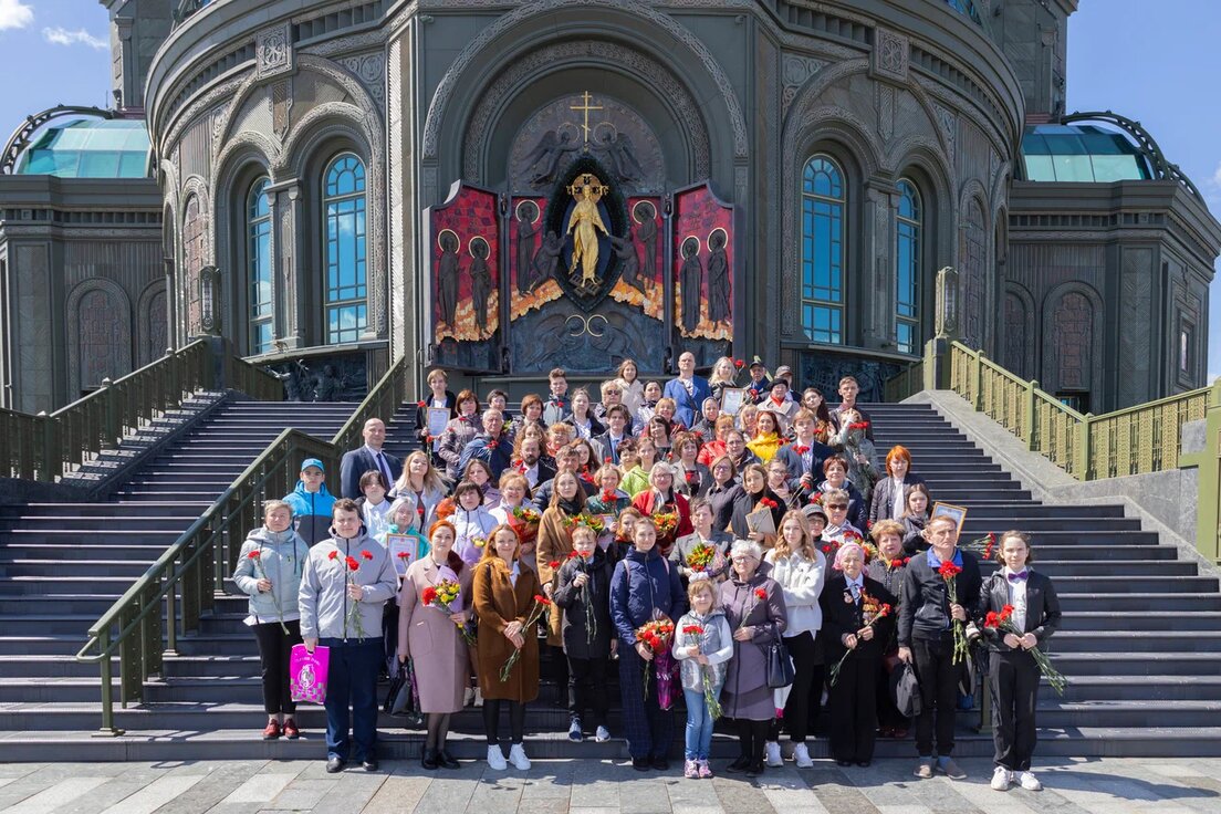 После церемонии награждения ее участники прошли к главному храму Вооруженных Сил – патриаршему собору во имя Воскресения Христова, духовному символу России, посвященному 75-летию Победы в Великой Отечественной войне и прославляющему величайшую победу жизни над смертью. На ступенях храма сделана общая фотография участников мероприятия.