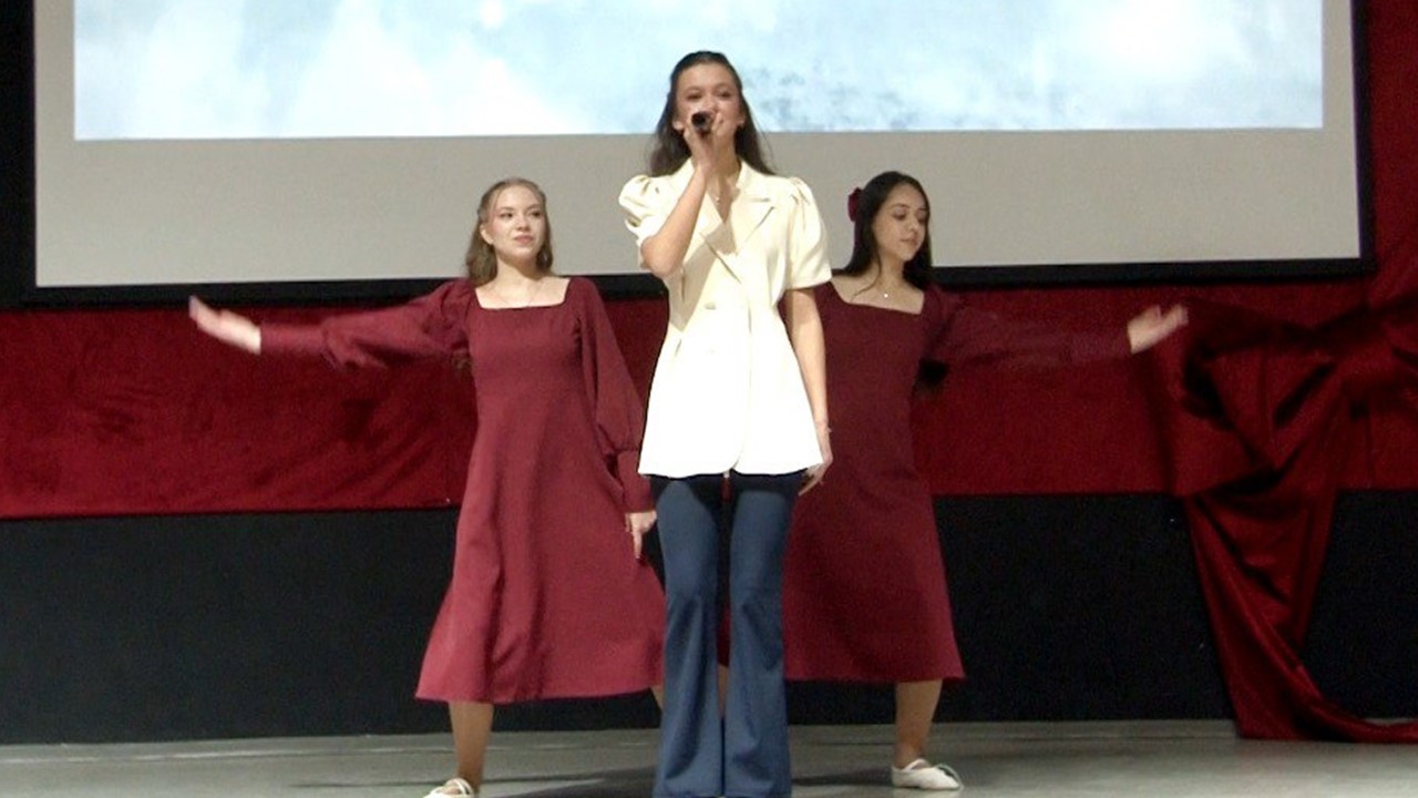 Студенты первого курса факультета среднего профессионального образования Акобян Алиса, Петросян Лилия и Иванова Виктория выступили на фестивале с вокальным номером, исполнив песню "Звенит январская вьюга". Их исполнение стало одним из самых ярких моментов программы. Мелодия, знакомая и любимая многими, вызвала у зрителей самые светлые чувства.